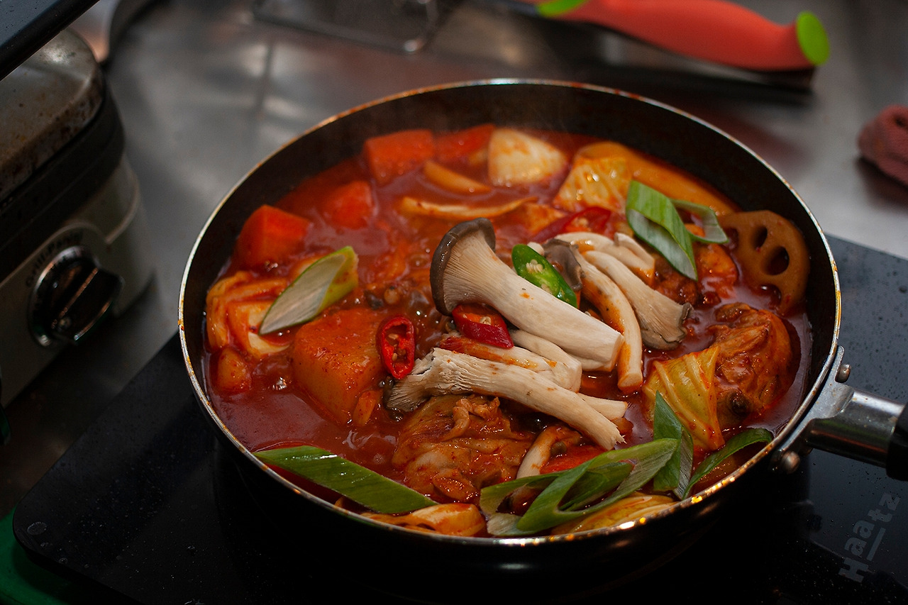 나머지 부재료는 닭도리탕에 들어가는 재료면 충분하다. 필자는 낙지랑 연근, 중국당면, 청경채 정도만 추가했다. 뭐, 전복 넣고 싶으면 넣어도 되고, 드래곤이나 오크, 가고일 고기 등을 넣어도·······.