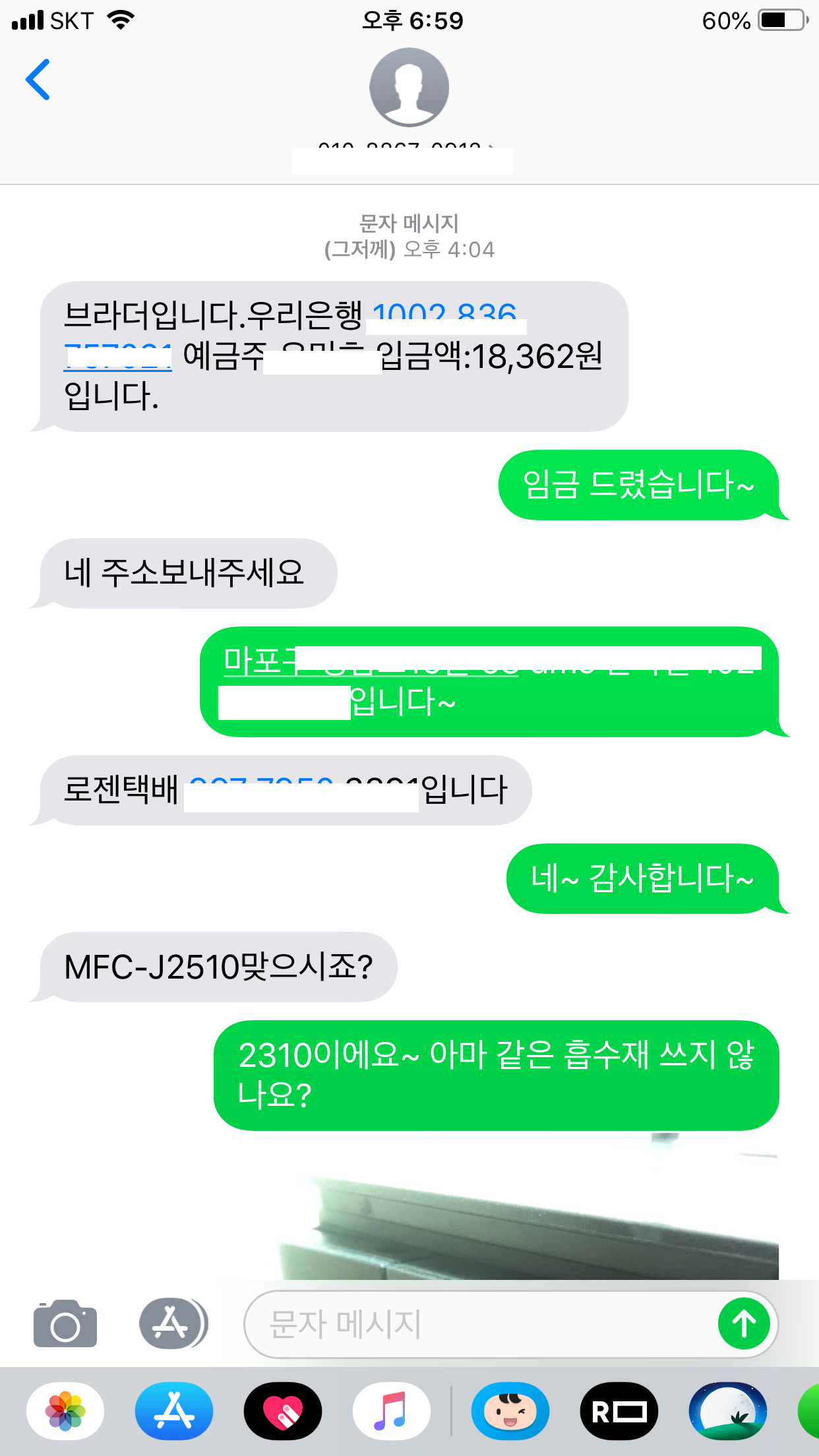 그랬다. 난 즉시 입금했고, 다음날 짱짱한 새 흡수재를 받을 수 있었다. 그리고 단번에 흡수재를 교체했고, 프린터 디바이스에 접속해 흡수재를 새걸로 교체했다는 명령을 보냈다.