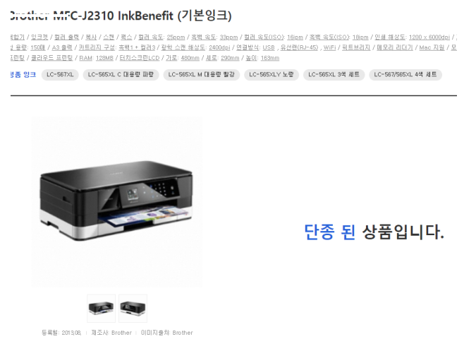 진짜 며칠간 이곳저곳 다 뒤져봤는데도 없다. 이미 단종 된 프린터라 그런가? 본사 공식 쇼핑몰에도 없고, 해외 쇼핑몰에도 없고, 네이버 쇼핑에도 없다.
