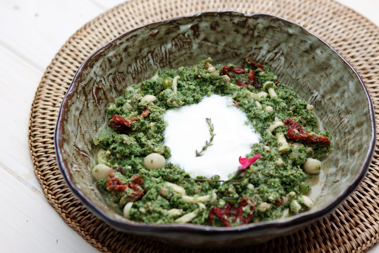 13. 짜잔~ 참비름 커리 완성. 마지막에 남은 요거트를 올려 주었다.