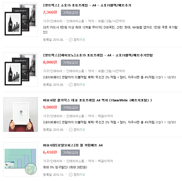 포탈 사이트 검색창에 ‘A4액자’ 또는 ‘A4매트액자’를 치시면
