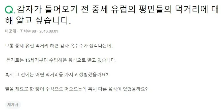 서구에서도 일반인들의 식사는 잡곡, 즉 보리, 호밀, 메밀, 귀리, 콩 등이 주식이었으며, 빵은 반죽을 해야 한다는 점과 한 번 구울 때마다 오븐을 사용해야 하고, 대량의 연료를 사용해야 하기 때문에 많이 먹을 수 없었습니다. 요즘 같으면 쓰레기통으로 갈 굳은 빵을 수프나 죽에 찍어먹었지요. 수프 재료로 쓰든가요.