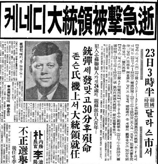 1963년 11월 22일, 텍사스 주 댈러스 시에서의 유세 도중 미치광이인 리 하비 오스월드의 흉탄에 저격당했기 때문이다.