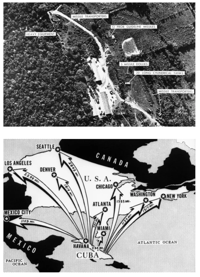 미군 정찰기가 촬영한 쿠바 내 소련군 미사일 기지와, 쿠바에서 발사될 소련 미사일의표적들