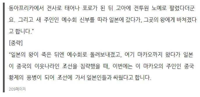 여기서 <흑인 사무라이 야스케>를 봐주세요 일본 전국시대와 임진왜란 시기 관련해서 등장하는 흑인...