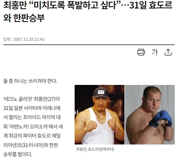 ‘응? 최홍만은 뭐고 효도르는 또 뭐냐?’