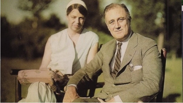 부인인 엘리너와 함께... 엘리너는 프랭클린의 정치적 경력상 어머니와 다름없는 여인이었다.