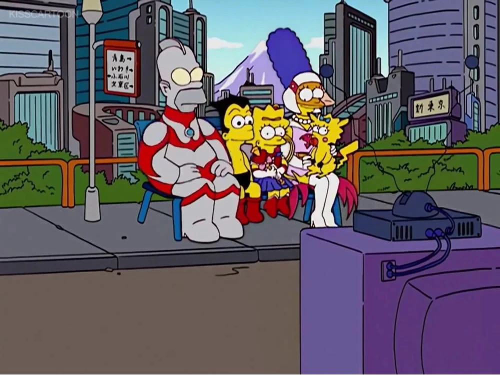 에피소드 시작 영상에서 아톰 코스프레를 한 바트 심슨(왼쪽에서 두 번째). 그리고 울트라맨인 호머 심슨, 세일러문인 리사 심슨, 백조 준(...)인 마지 심슨, 피카츄인 메기 심슨