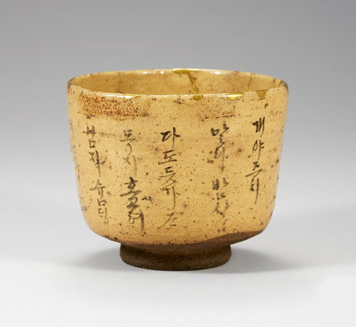 한글 붓글씨를 적은 17세기 하기야키 ‘추철회시문다완’. https://www.segye.com/newsView/20131230006162