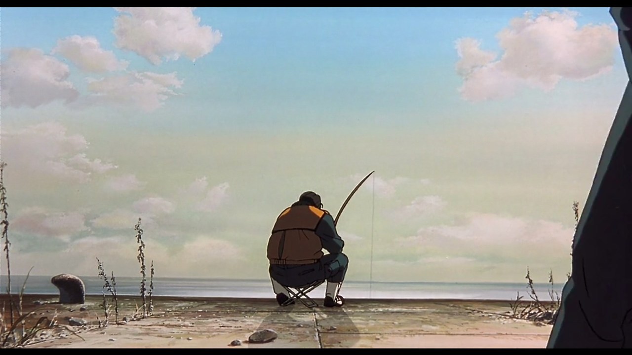 하지만 고토는 출동이 없을 때마다 (그러니까 한가할 때마다) 간척지의 가장자리에서 낚시를 드리우고 저 너머를 바라본다.