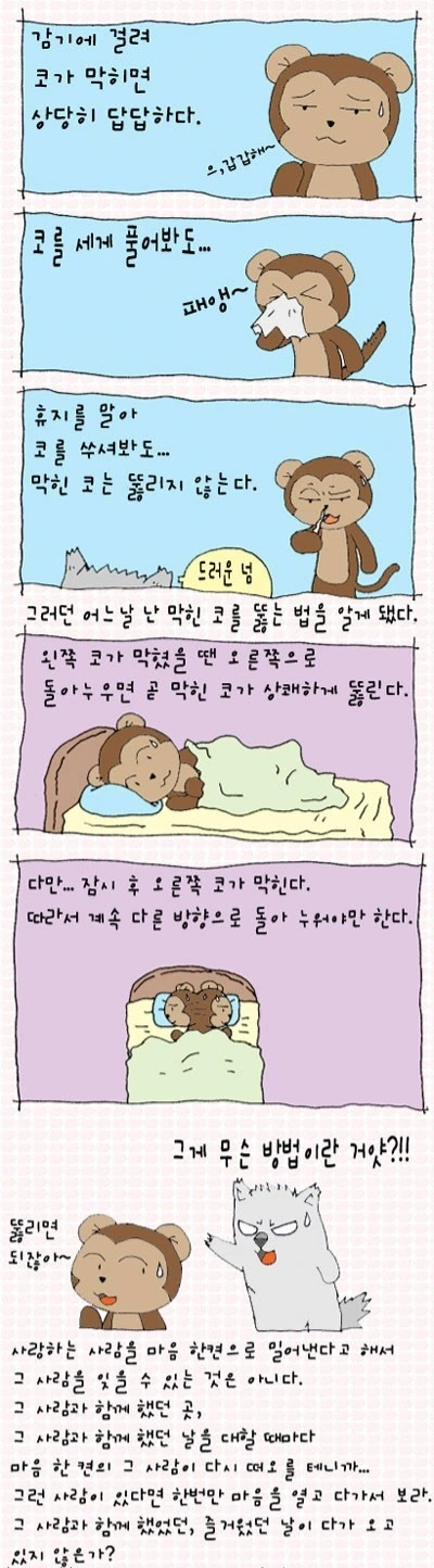코를 휑~ 풀면 코가 완전히 뚫리기도 한다.