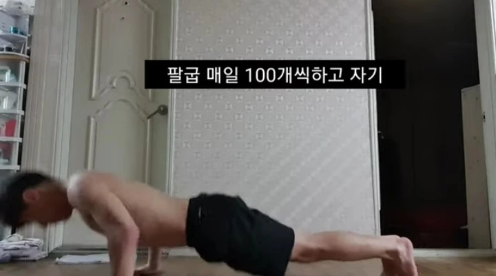 뽀시래기 시절 루틴. 매일 팔굽혀펴기 100회씩 하고 자기