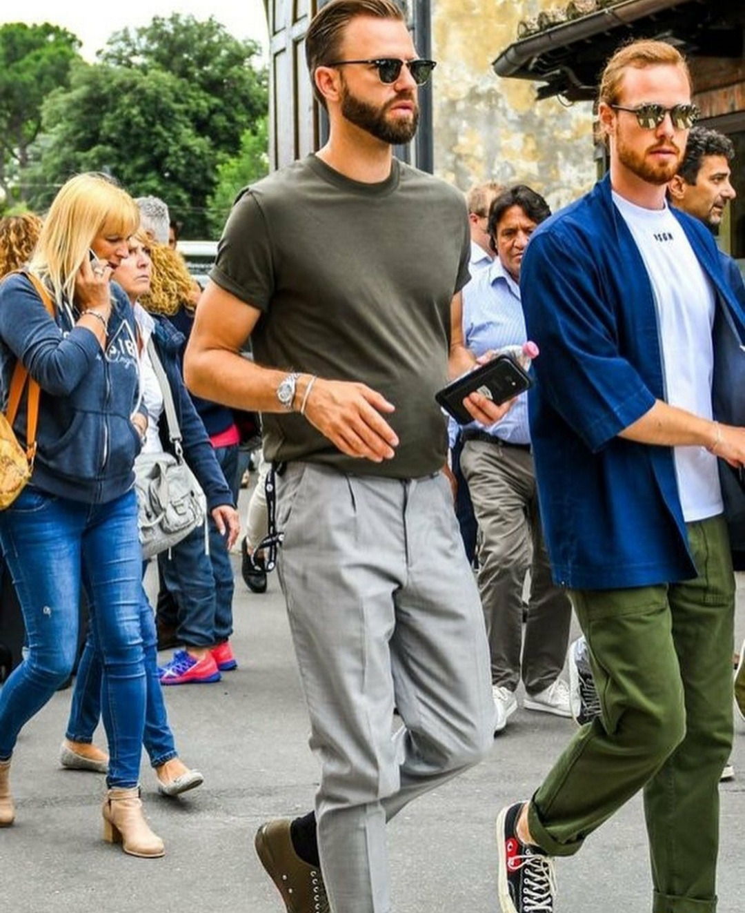사실 턱 팬츠는 아직 Z세대 사람들이 생각하기에 올드하고 아저씨, 할아버지들이 입고 다니는 정장 바지?라고 생각할 수도 있다. 하지만 요즘은 이 바지를 슈트에 국한하지 않고 캐주얼하게 특유의 여유로운 실루엣을 연출하기도 한다. 위 사진처럼 반듯해 보이지만 턱을 주어 여유롭고 활동성 있는 실루엣을 연출할 수 있다.