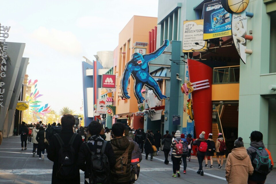 다음날 우리의 목표는 ‘유니버셜 스튜디오 재팬’이었다. 20대 오사카 여행객이라면 빼놓을 수 없는 필수 관광지로 각종 영화를 주제로 한 테마파크이다. 가장 유명한 어트렉션은 해리포터인데, 일명 ‘해리포터 덕후’였던 우리는 부푼 꿈을 안고 새벽 일찍 놀이공원으로 향했다. 오사카를 대표할 만큼 유명한 곳이라 그런지 놀이공원으로 향하는 전철에 유니버설 스튜디오의 풍경과 해리포터가 그려져 있었던 기억이 난다. 우리는 그걸 보고 해리포터 전철이라며 들떠있었다. 놀이공원으로 가기 위해 먼저 유니버설시티역에서 내려 걸어갔어야 했는데 전철에서 내린 순간부터 내가 서 있는 곳이 만화책의 한 풍경 같은 느낌을 받았다. 단색의 휘황찬란한 건물들에 눈을 뺏겼을 때 유니버셜의 입구를 보고 더 흥분했다. 내가 그리던 유니버셜의 풍경보다 더 크고 장대했기 때문이다. 입구는 이렇게 큰데 안은 얼마나 넓고 재미있는 것들이 많을지 한껏 기대에 부풀어 올라 있었다. 다만, 유니버셜의 규모가 큰 만큼 오픈 시간도 안 됐는데 기다리는 사람이 많아서 한참 후에야 놀이공원에 들어갈 수 있었다.