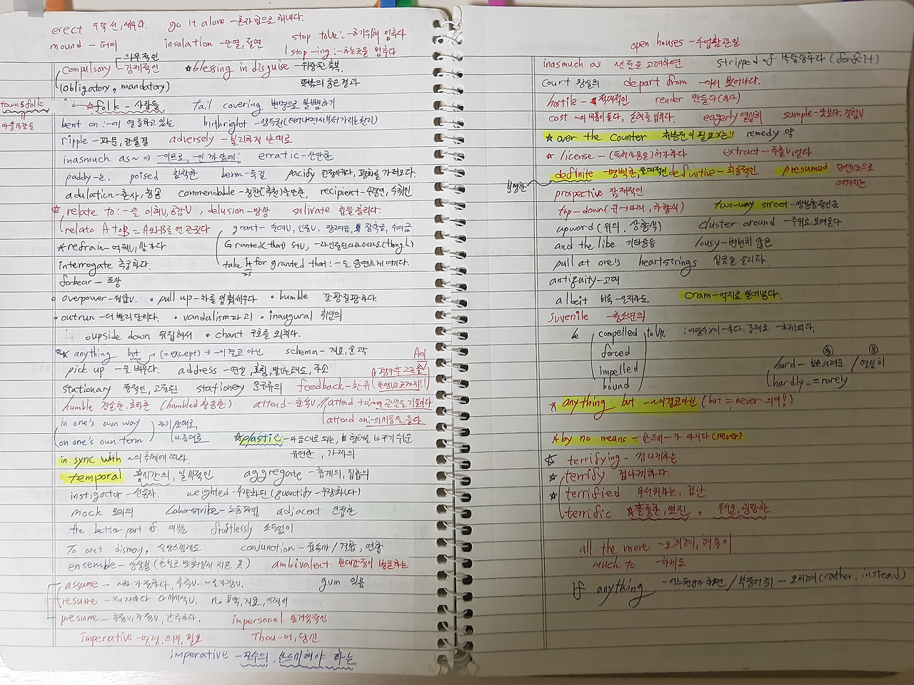 영어는 국어처럼 기출 분석을 기본으로 하되, 자신만의 단어장을 만들기를 추천한다. 기출, EBS 연계 교재 문제를 풀면서 모르거나 헷갈렸던 단어를 중심으로 단어장을 만들면 아는 단어를 또 외우는 일을 줄여 효율적으로 단어를 외우는 데 도움이 된다.