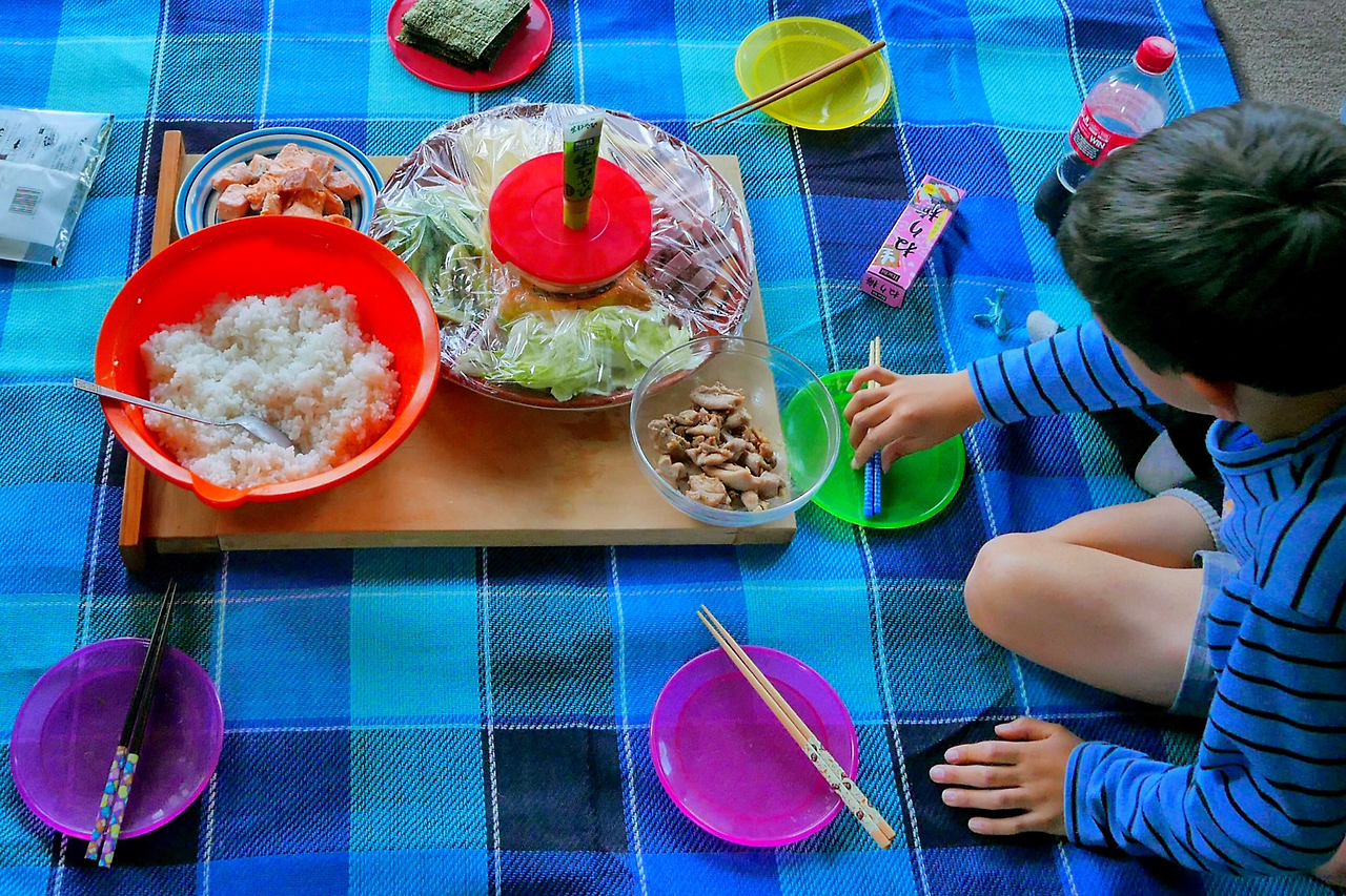 크리스마스이브, 치아키가 우리를 저녁 식사에 초대해주었다. 우리는 거실에 깔아놓은 파란색 피크닉 매트 위에 동그랗게 둘러앉아 그녀가 준비한 일본 가정식 초밥을 먹었다. 바삭바삭한 생김에 더 이상 밥알이 훌훌 날리지 않는 찰진 쌀밥과 고추냉이를 곁들인 간장만 해도 황홀한 식탁에 연어, 치킨, 참치, 치즈, 소시지 등 각종 재료가 더해졌다. 생김에 소시지만 잔뜩 올린 조합을 가장 좋아하는 리온은 크리스마스이브 기념으로 코카콜라를 마실 수 있다며 자랑을 한다. 코카콜라와 크리스마스 역시 괜찮은 조합이다. 소박한 소망이 이루어진 귀여운 저녁 식사는 우리 배를 잔뜩 불리었다.