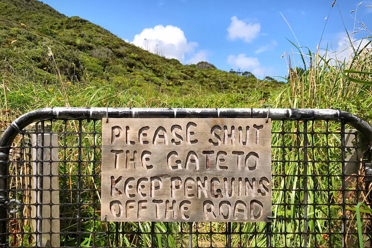 거친 바다를 오른쪽에 두고 남쪽으로 향하는 길, 그냥 지나치기 아까운 곳이면 차를 세우고 영상에 담거나 사진을 찍었다. 하지만 대부분은 아늑하게 넓고 왕성한 풍경을 충분히 담을 수 없어서 그냥 주저앉아 즐기는 데 더 많은 시간을 할애했다. 가끔은 무심코 지나친 곳이 아까워서 차를 돌려 다시 찾기도 했다. 낚시하기 좋은 곳에서는 조금 더 쉬어갈 때도 있었다. 한 번은 잔이 영상을 찍는 동안 혼자 서성이다가 해변으로 내려가는 입구가 보여서 조심스럽게 열어 보았더니, 펭귄을 위해 문을 꼭 닫아 달라는 안내가 걸려있었다. 뾰족한 마음도 녹일 것 같은 동글동글 귀여운 안내판의 글씨체가 마음에 들었다. 이런 귀여움이 가파른 언덕을 아장아장 올라 도로 진입하려는 펭귄을 보호하고 있는 곳이 뉴질랜드다. 그리고 나는 마주치지도 않은 펭귄과 어쩌면 같은 길을 밟았을지도 모른다는 사실에 기분이 좋아졌다.