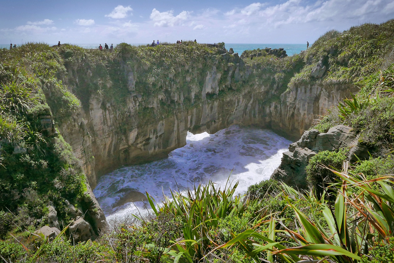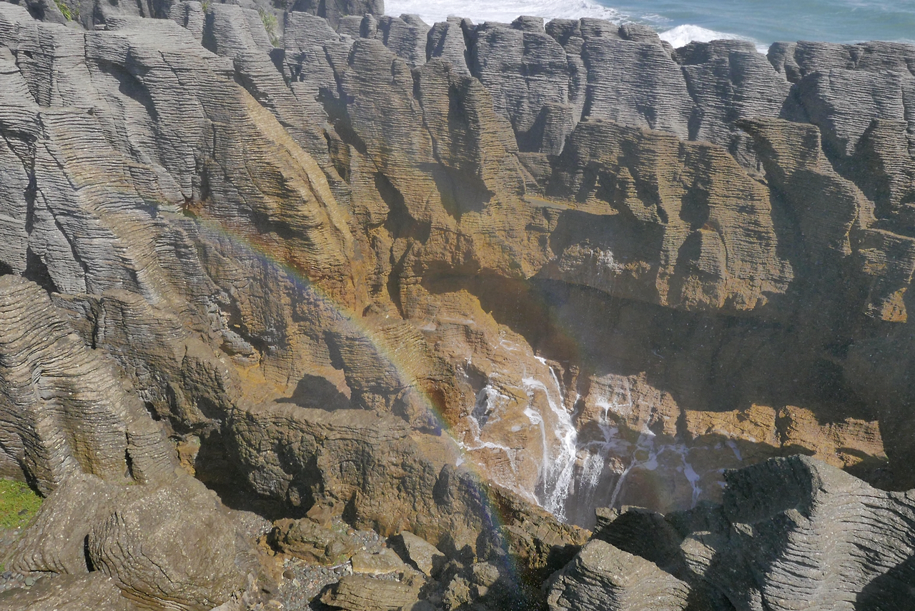 잔은 뉴질랜드가 어렸을 때 살았던 제주도를 닮았다는 말을 했었다. 나도 깊숙한 숲길을 걸을 때면 한동안 푹 빠져 걸었던 제주의 올레길이 생각났다. 뉴질랜드는 제주도와 나이 차이가 많이 나는 큰형님같은 느낌이었다. 잘 닦아 놓은 관광지보다 힘들게 걷다가 문득 마주치는 풍경에 감탄이 새어 나오는 것 또한 마찬가지다. 어쩌면 사람이 가득 모여 여유가 없어진 공간에서는 개개인이 느낄 수 있는 감동이 줄어드는 것인지도 모르겠다. 켜켜이 쌓인 세월이 거대한 케이크를 만든 파파로아 국립공원(Paparoa National Park)의 펜케이크 바위(Pancake Rocks)는 잘 닦아 놓은 길 덕에 접근은 쉬웠지만 인파에 밀려 서둘러 감상을 끝내야 했다.