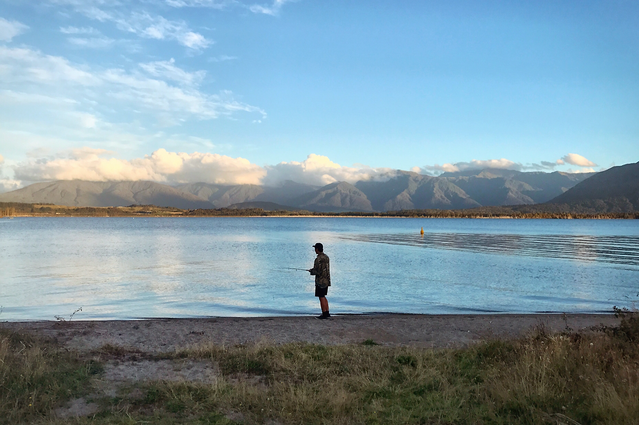 잔은 두 번째 캠프 사이트로 'Lake Brunner Motor Camp'를 골랐다. 아무 생각 없이 실려가던 나는 'Moana'라고 적힌 도로 안내판을 보자마자 신이 났다. 마침 며칠 전에 보았던 디즈니 영화의 유쾌한 감상이 떠올라 절로 "내가 모아나다!"를 중얼거리며 들뜬 기분으로 도착한 조용한 캠프 사이트는 호수가 내려다 보이는 탁트인 언덕에 있었다. 잔이 사무소에서 값을 치르는 동안 나는 사뿐사뿐 손님 마중을 나온 고양이의 털을 한참 만졌다. 까만 레깅스에 노란 나비의 털이 잔뜩 묻어 황망한 웃음을 짓자 마지막 손님을 받은 아저씨는 털 범벅이 된 자신의 바짓 자락을 가리키며 사람 좋은 웃음을 지었다. 우리는 공동 부엌, 화장실, 샤워장이 어디에 있는지만 간단히 확인하고 차를 몰아 또 다른 강어귀를 찾았다. 잔은 이리저리 장소를 바꿔가며 낚시를 했고, 나는 낚시꾼 주변을 맴돌며 산책을 했다. 파도가 바다의 일이라면 낚시는 잔의 일이었다. 여행을 시작한 이후로 잔은 단 하루도 낚시를 잊은 적이 없었다. 비록 오늘 저녁은 아쉽게도 빈손이었지만, 우리는 붉은 색으로 짙게 물든 하늘을 머리 위에 얹고 캠프 사이트로 돌아갔다.