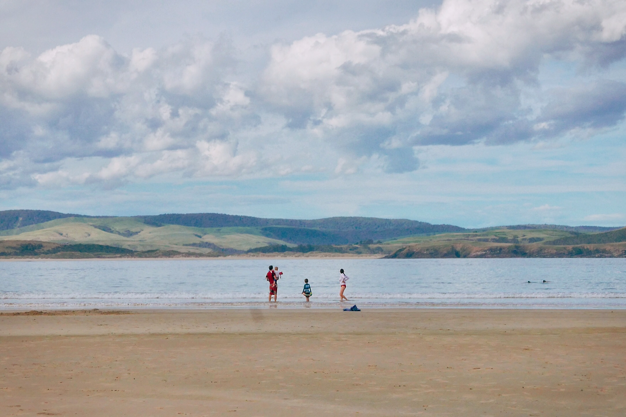 널찍하게 펼쳐진 바다는 생각보다 한적했다. 물이 빠져 더욱 넓어진 백사장에는 작은 웅덩이가 있었고, 따뜻한 햇볕에 적당히 데워진 얕은 물은 이미 꼬맹이들의 차지였다. 어린 생명체의 싱그러운 소리와 몸짓은 지나치게 사랑스러워 돌고래와 바다사자를 잠시 잊게 했다. 그중에서도 제일 작은 꼬맹이가 엉금엉금 팔과 다리로 백사장을 누비는 모습은 알을 품은 어미 바다거북을 닮았다. 너무 귀여워 연신 터져 나오는 괴성을 겨우 삼키며 걸음걸음을 비디오로 남겼다. 그제야 저 멀리 파도 속에서 함께 출렁이고 있는 몇 무리의 사람들이 보였다. 그중에는 무엇보다 리드미컬하게 파도를 타고 있는 작고 검은 것 무리가 있었다. 세상에서 제일 작다는 헥터 돌고래였다.