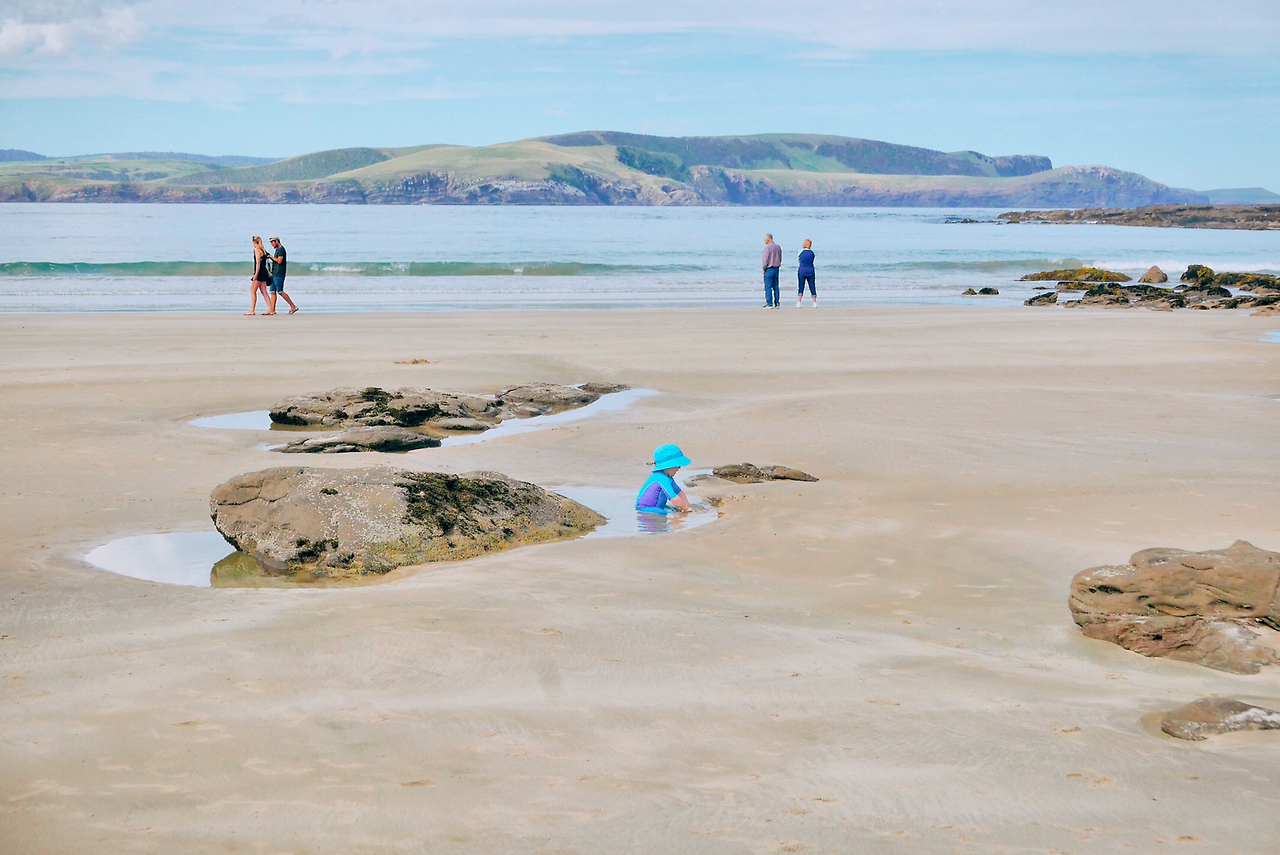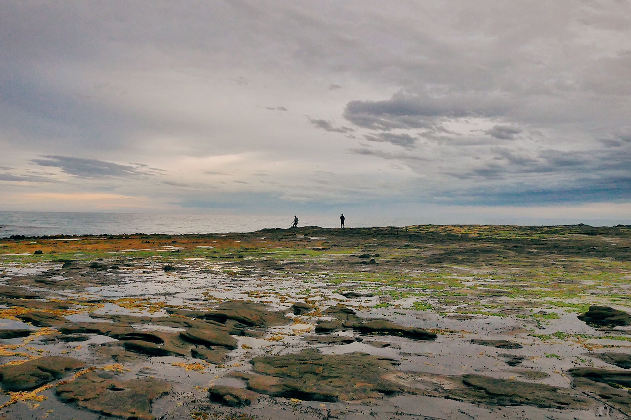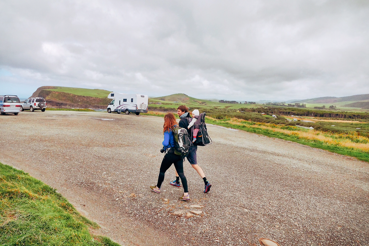 붐비는 홀리데이 파크를 몇 바퀴 돌아 낡은 캠핑카 옆에서 겨우 빈자리를 찾았다. 평편한 땅을 골라 자리를 잡느라 잔은 몇 번이나 운전대를 돌렸다. 기울어진 땅에 자리를 잡으면 자다가 누군가를 쉽게 덮치거나, 은근히 피가 발이나 머리로 쏠리는 수가 있다. 마이클과 잔은 저녁 거리를 마련하기 위해 낚싯줄을 물에 담갔고, 나는 웅덩이를 뛰어 다니며 작은 물고기나 게 따위를 쫒았다. 거대한 바다 식물을 피해가며 깊은 바다에서 낚시를 하기 쉽지 않았다고 한다. 두 남자가 바다 사냥에 실패한 탓에 저녁 메뉴는 짜파게티였다. 갑자기 내리는 비를 피해 두 캠핑카에 천막을 연결하고 주방을 마련했다. 급히 식사를 마치고 천막을 그대로 둔 채로 잠을 청한 탓에 거센 바람이 천막에 부딪힐 때면 돛대를 펼친 것처럼 부웅하고 차가 들썩거려 잠을 설쳤다. 요란한 그라피티가 그려진 캠핑카의 주인은 뜻밖의 노부부였다.