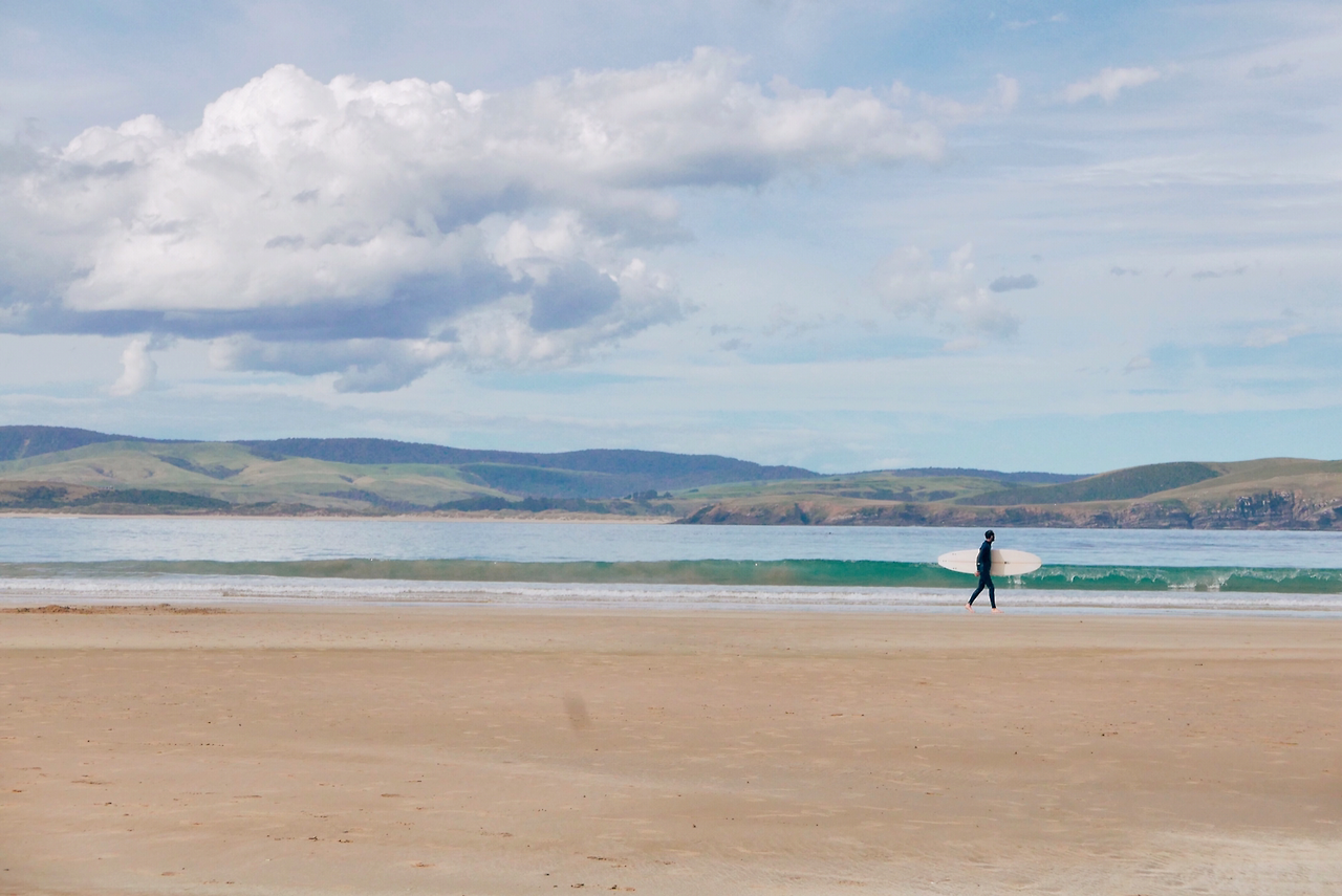 멸종 위기인 작은 돌고래가 파도를 오르내리며 스칠 때마다 바닷물에 몸을 담근 사람들은 환호성을 질렀다. 나는 꽉 조이는 레깅스를 최대한 걷어 종아리까지 바닷물에 담그고 사랑스러운 움직임을 바라보았다. 서핑 보드 위에 몸을 싣고 가만히 떠있는 서퍼 곁을 맴도는 돌고래의 부드러운 담금질이 다음 날 서핑 강습에 대한 기대치를 무한 끌어올렸다. 내일은 스윔슈트를 입고 바다에 몸을 던지리라. 해지는 차가운 바다를 뒤로 하고 캠핑카로 돌아가는 길, 서핑 교실 앞에는 작은 안내판이 세워져 있었다. '내일은 수업이 없어요.' 내일이 전부인 내게는 꽤 슬픈 소식이었다. 발목이 조금 늘어난 레깅스처럼 몸 한 구석이 헐렁해졌다.