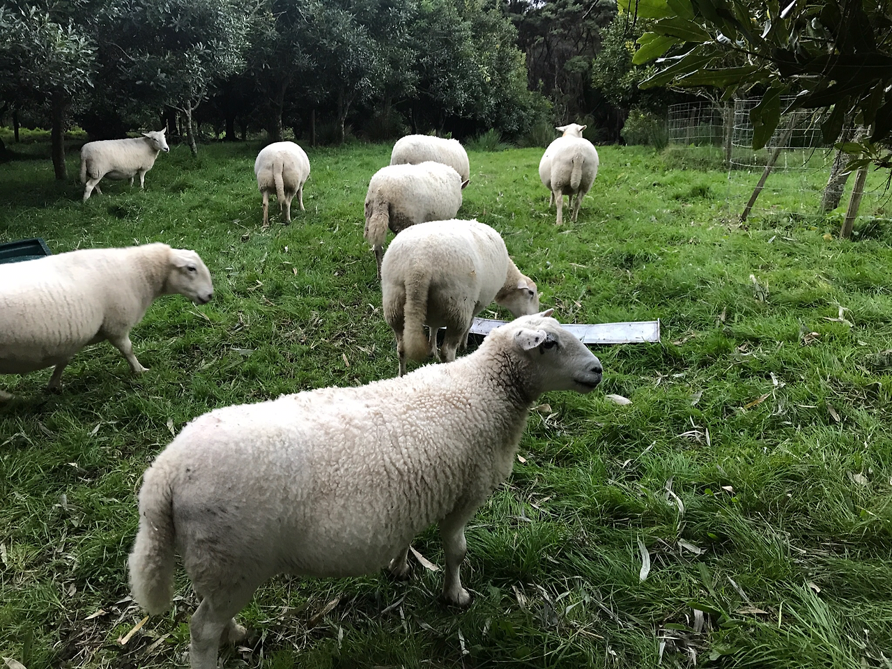 오늘도 몇 마리 양이 강아지처럼 사람을 반기며 쫓아왔다. 양이 통통 거리며 뛸 때마다 기다란 꼬리가 흔들렸다. 흔들 흔들이라니 어째서 양 꼬리가 길지? 보통 양 목장에서는 양이 태어나면 꼬리를 짧게 자른다고 한다. 꼬리가 길면 응아가 묻을 확률이 높고, 그 응아를 양분 삼으려 나비가 알을 낳게 되면 유충들이 양이 괴롭히고 심하면 죽음에 이르기도 한다고 했다. 우리 과수원은 단순히 잔디 관리 차원에서 스무 마리 남짓한 양을 키우는 것이라 충분히 양들을 살필 수 있어서 꼬리를 자를 필요는 없다고 했다. 실제로 Sue는 대부분 양들에게 이름을 지어 주었고 그들은 자신의 이름을 알아들을 정도로 친밀한 사이였다. 이렇게 양에 대해 알아가고 친해질수록 앞으로 양꼬치를 못 먹게 되는 건 아닐까 걱정이 됐다. 충분히 귀여워서 맛있을 필요까지 없었을 텐데. 하림 오빠는 맛있는 것이 얼마나 큰 죄인지 간단히 표로 보여줬다. '맛있다 -> 사형'