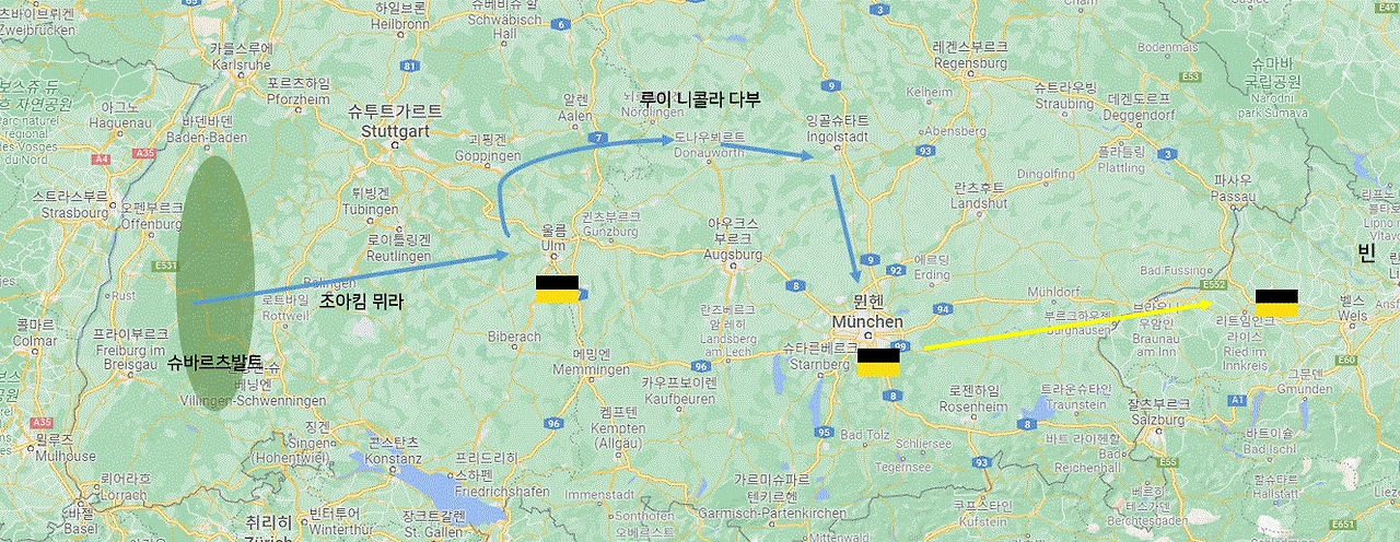 그사이 루이 니콜라 다부가 이끄는 프랑스 군은 쾌속 질주를 했다. 도나우뵈르트를 넘어 잉골슈타트-뮌헨으로 이어지는 대회전을 감행했다. 이 지역을 지키고 있던 오스트리아의 키엔마이어 장군은 러시아 군과 합류하려는 목적으로 동쪽으로 퇴각했다.