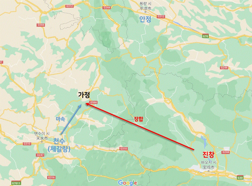 시간은 촉나라의 편이다. 농서 지방도 촉에 호응했으니, 장합의 본대가 넘어오지 못하게 시간을 번다면 제갈량의 본대가 알아서 옹주 지방을 정복해 나갔을 것이다. 가정에서 마속의 역할은 시간 벌기였다. 시간이 없는 건 장합의 군대였다.