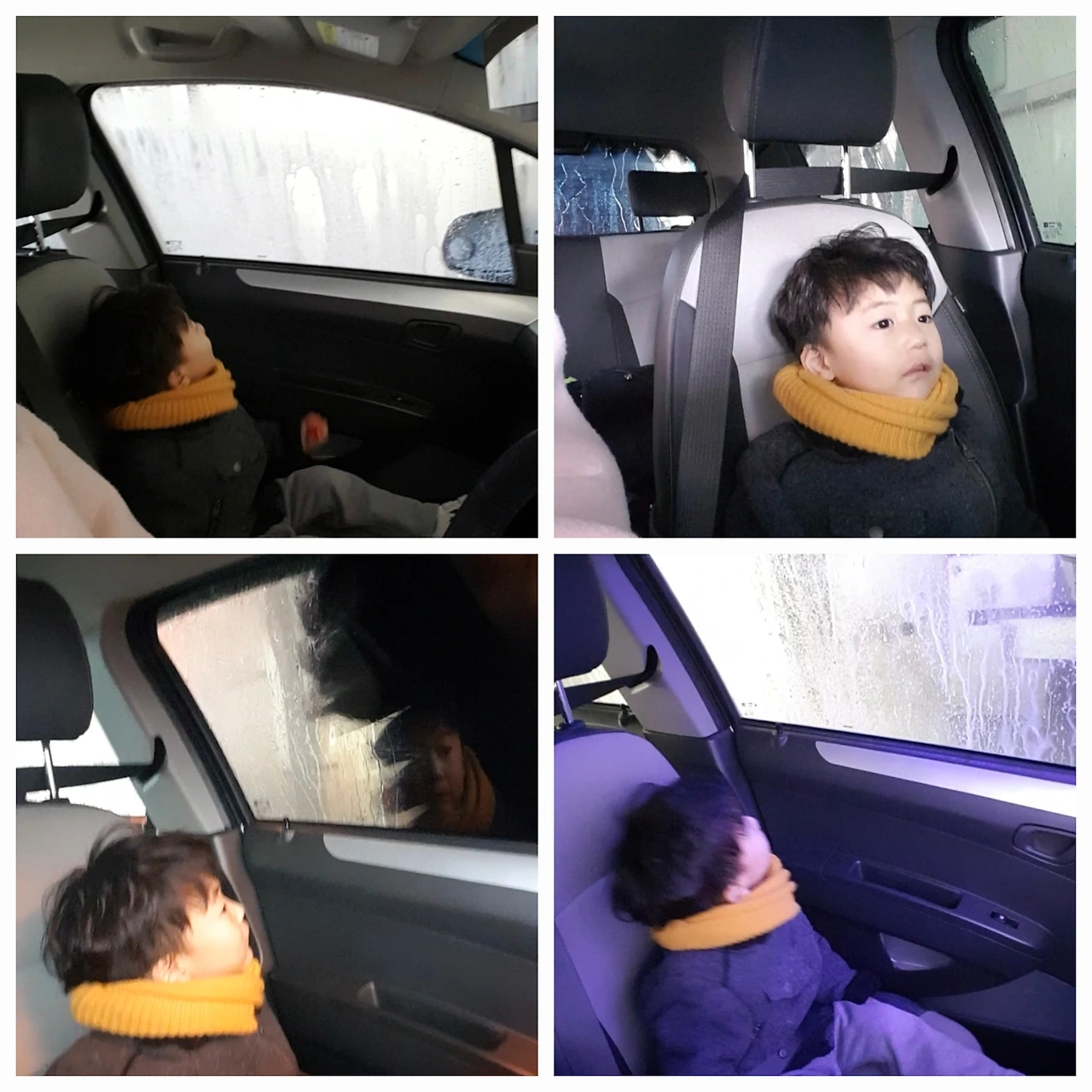 그 모습을 보면서, 제 마음도 아이가 원하는걸 해주자 하며 웃어버렸습니다. 아이는 세차 기계가 돌아가는 소리와 물줄기가 나오며 거품이 생기는 것을 바라보며