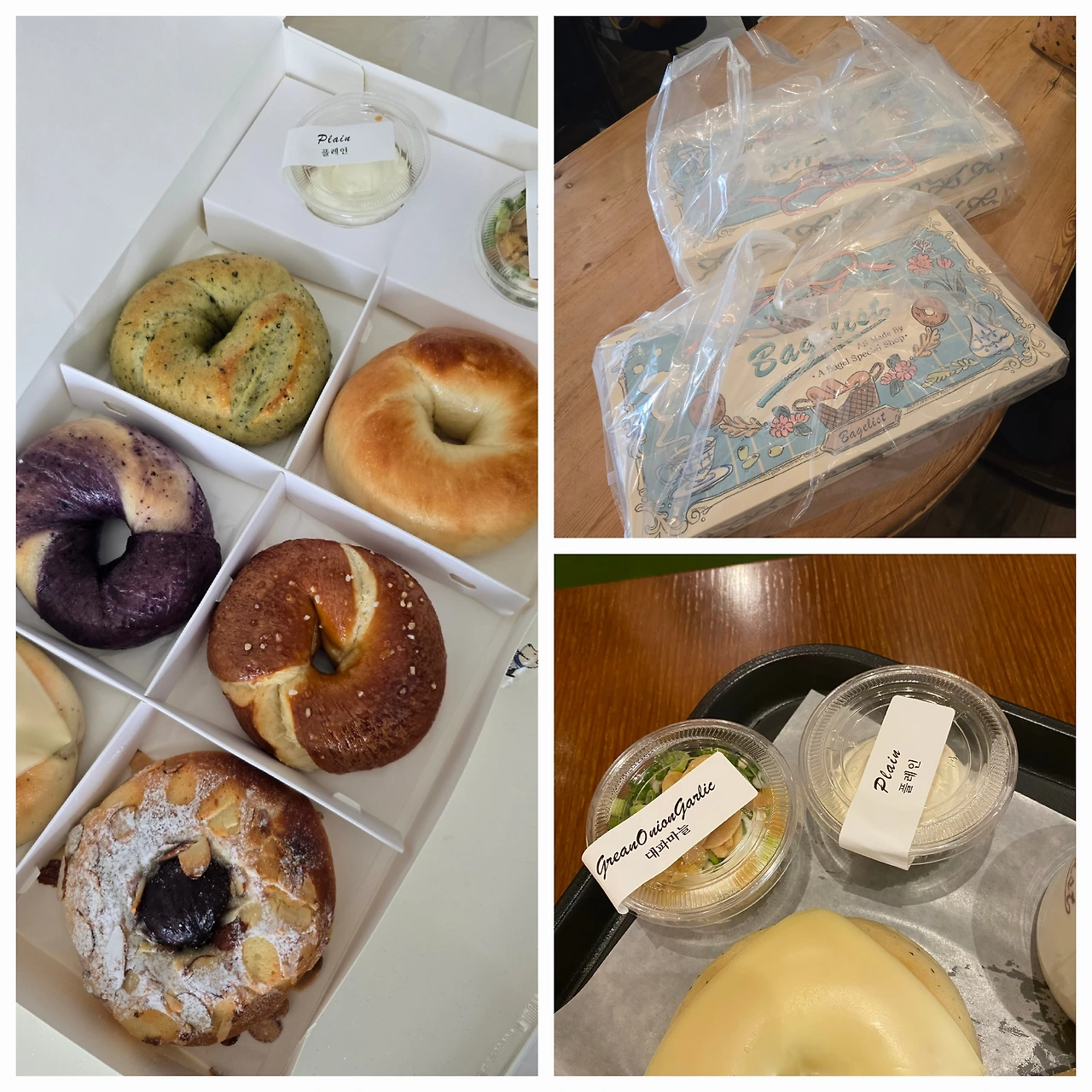 기본으로 가야 한다며 플레인 베이글을 주문하고 대파크림치즈를 곁들여 한 입 베어 물었다.