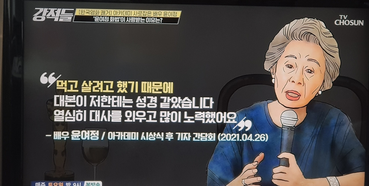설사 그랬더라도 그리 대답할 수는 없었을 거다. 남들에게는 내 고통과 내 현실을 들키고 싶지 않은 게 사람의 마음인데 윤여정 님은 솔직하게 이야기했다. 이런 이야기들이 그땐 감추고 싶은 현실이었는지 몰라도 지금은 그녀를 더 높게 만드는 점이 되었다.