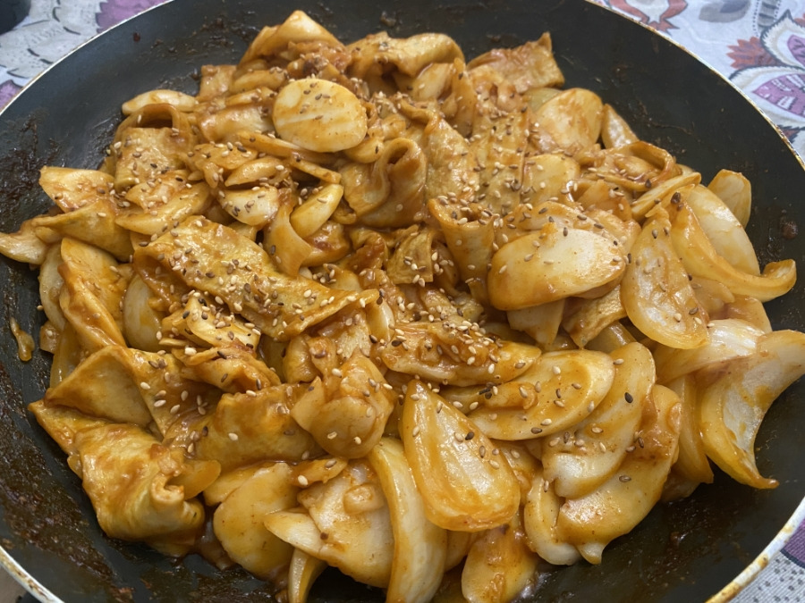 오늘 점심에 숨겨둔 떡볶이 온갖 야채들을 찾아 넣었어 맛나겠지?