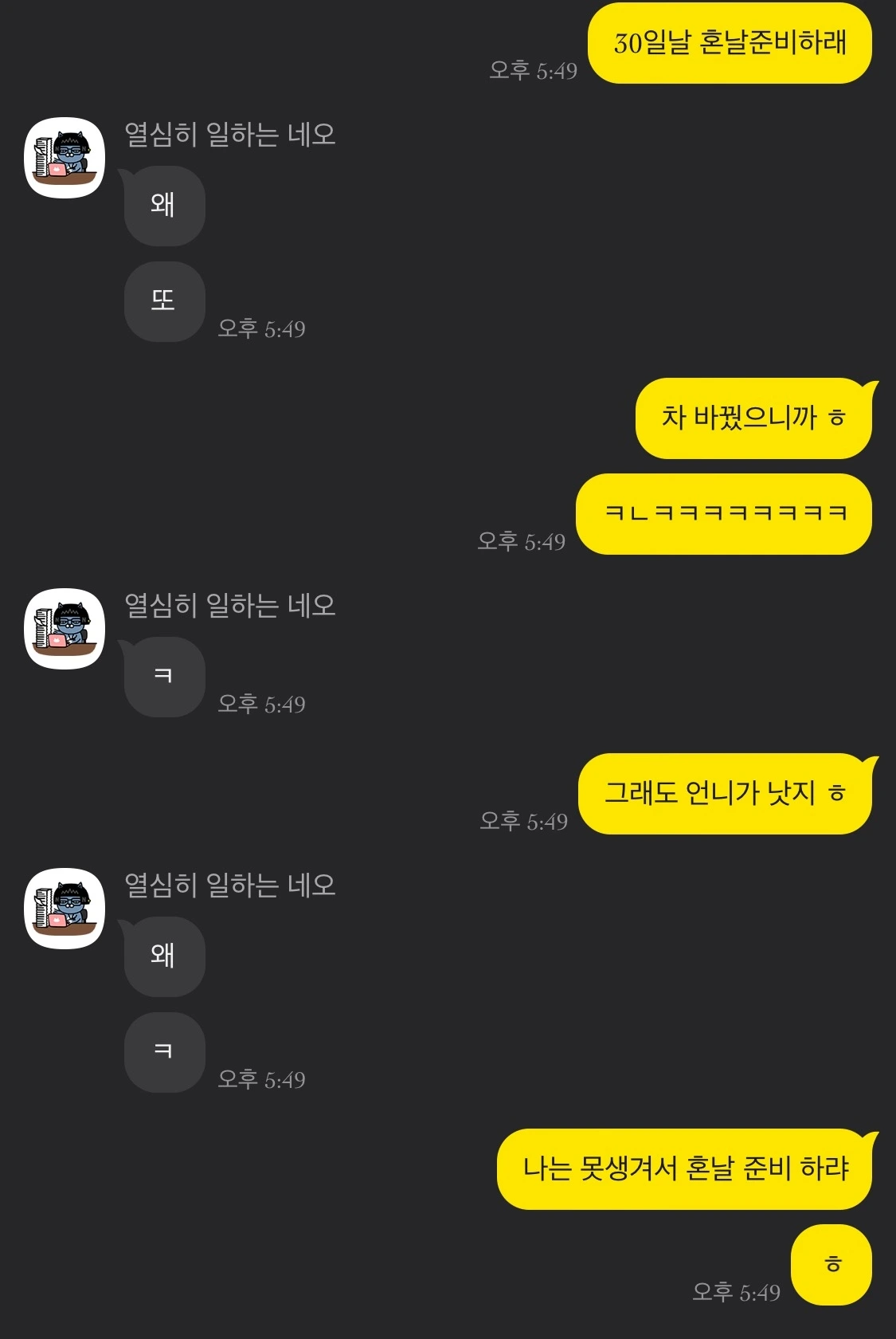 시간이 지나 나는 중학생이 되었다. 학교에서도 집에서도 훈육 수준을 넘은 체벌이 당연했던 때였다. 우리 엄마는 여러 도구를 사용하셨으나 주로 30분간 신문지를 한 장 한 장 돌돌 말아 테이프를 붙이길 반복하는 정성 가득한 체벌을 하셨다. 그러던 어느 날, 어느덧 엄마보다 더 커진 오빠가 엄마 팔을 막고는 말했다. 내 동생들 이제 자기가 관리할 테니 손대지 말라고. 그걸 계기로 우리 집은 체벌이 사라졌다.