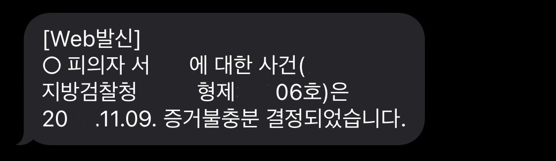 검찰청에서 문자가 왔다. 내가 고소한 형사사건이 증거불충분으로 혐의없음, 무죄 결정되었다고.