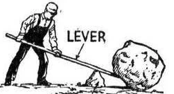 지렛대 효과라고도 하며 그림처럼 돌을 직접 들어 올리려하면 많은 힘을 필요로 하지만, 지렛대와 받침돌이 있으면 받침돌을 어디 고이느냐에 따라서 작은 힘으로도 무거운 돌을 비교적 쉽게 들어 올릴 수 있듯이, 나의 자본이 부족할 때 적정한 타인의 자본을 합하여 목적 달성하는 것을 레버리지 효과라고 한다.