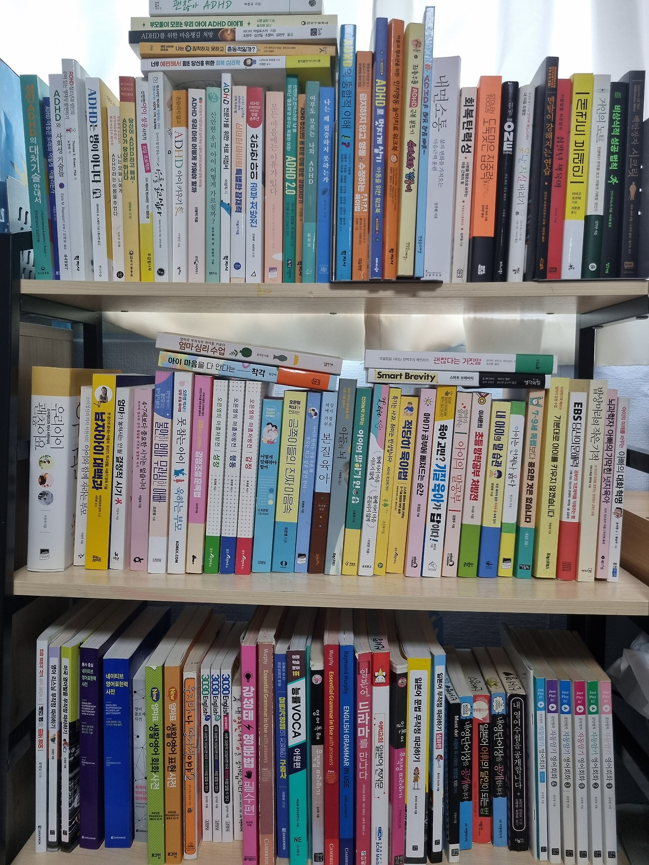 그것이 시작이 되어 저는 육아서들을 미친 듯이 모으기 시작했고, 저와 아이가 ADHD진단을 받고 난 후에는 ADHD와 심리 관련 책들을 열심히 읽었습니다. 새로운 꿈이 생기고 나서는 자기 계발서도 챙겨 보았죠.