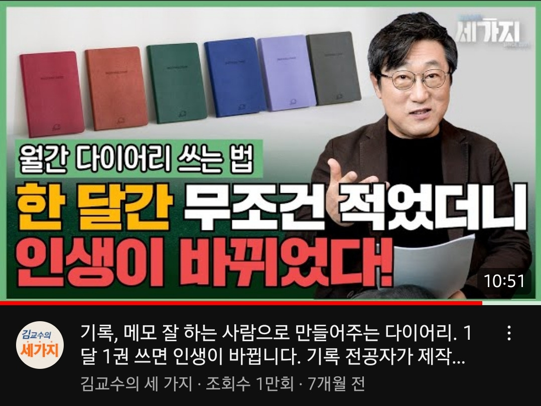 가장 처음 봤던 영상은 '김익한 교수님'이 만드신 월간 다이어리, '파코챌 다이어리'에 관한 영상이었습니다.
