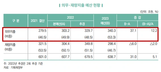 여기서 약간 생소할 수 있는 의무지출, 재량지출 이야기를 해보겠습니다