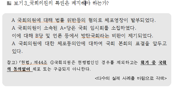 ※ 소속 정당(같은 정당 또는 반대당) 및 문제상황(관련 정책 또는 법률위반 사항)을 고려하지 말고, 국회와 국회의원의 기능, 민주주의 원리만 고려하여 자신의 생각을 얘기해 봅시다