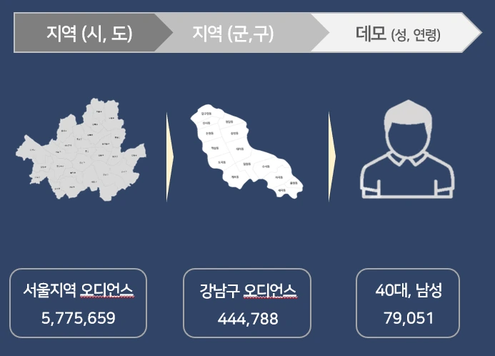 소비자 거주지역 / 연령 필터링 예시 (기준 : 명)