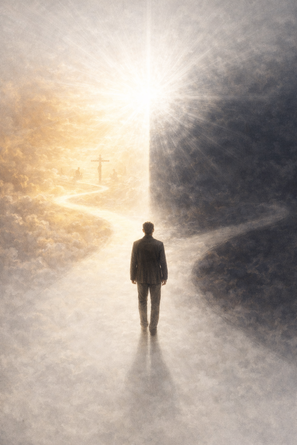 신은 이제 나의 의식 앞에 두 개의 길을 펼쳐 보였다. 하나의 길은 찬란하고 따뜻한 빛으로 가득 차 있었고, 다른 길은 태초의 차갑고 무감각한 암흑으로 이어져 있었다.