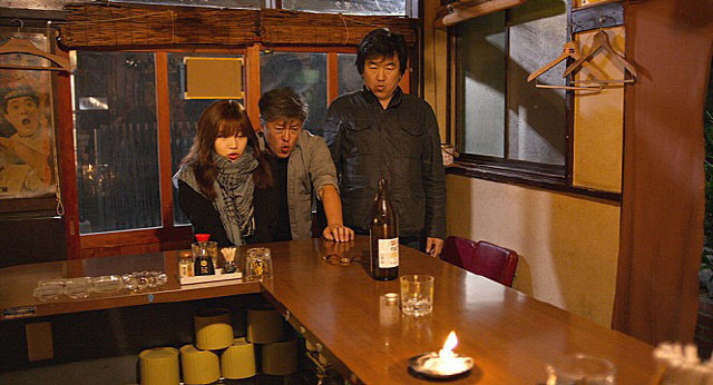 <후쿠오카>는 책방의 손님인 소담(박소담)이 헌책방의 주인 제문(윤제문)에게 함께 후쿠오카 여행을 가자는, 느닷없는 제안으로 시작합니다. 제문은 다만 손님에 불과할 뿐 아니라 자신보다 서른 살 정도 어린 소담의 제안을 거절하지만, 결국 후쿠오카에 가게 됩니다. 그곳에 28년 전, 순이라는 한 여인을 두고 다퉜던 동아리 선배 해효(권해효)가 있다는 소식을 들었기 때문입니다. 제문은 소담과 함께 해효가 운영하는 술집을 찾아가고, 제문과 해효는 함께 술을 기울이며 오래 묵은 감정들을 풀게 됩니다. 그리고 자연스럽게 어울리지 않을 듯 어울리는 세 사람은 함께 후쿠오카의 거리를 돌아다니게 되고 그 여행 속에서 기묘한 일들을 만나게 됩니다.