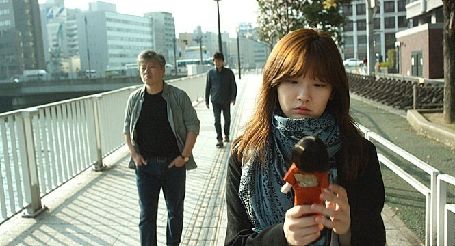 혹시 <후쿠오카>에서 묻어나는 신비로움을 보다 더 깊게 바라보고 싶다면 장률 감독의 <군산>을 먼저 보고 오는 것을 추천해드립니다. <군산>은 이 영화의 바로 이전 작으로, <후쿠오카>와의 내적 연관성이 깊기 때문입니다. <군산>에서 배우 박소담은 어머니를 잃고 자폐를 겪는 재일교포로 등장하고 윤제문은 학교 후배 윤영(박해일)과 함께 군산으로 여행을 가는 송현(문소리)의 전남편으로 등장합니다. 또한 <군산>에서 소담의 고향은 후쿠오카이기도 하고 소담이 가지고 다니는 빨간 인형과 그녀가 부르는 노래가 <후쿠오카>에서 반복되어 등장하기도 합니다. 이렇듯 상이한 영화의 각기 다른 인물들이 어딘가 묘하게 겹치고 서로 다른 국가의 공간들이 이물감 없이 섞이면서 보다 더 확장된 영화적 세계를 만들어냅니다.