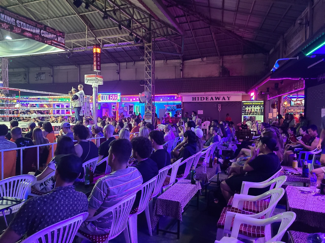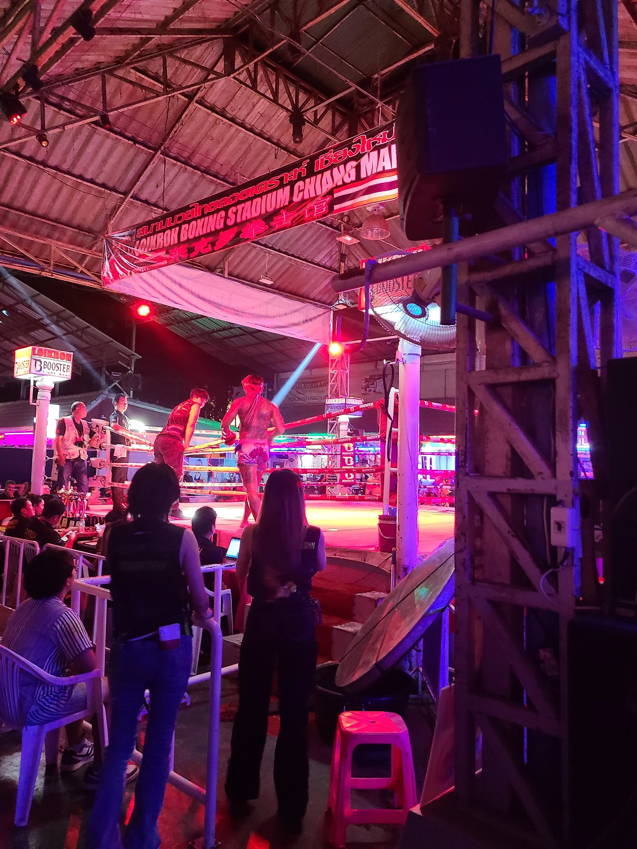 그렇게 500바트, 2만 원 정도의 입장료를 내고 들어간 체육관은 치앙마이 시내의 Loi Kroh Boxing Stadium이라는 곳이다. 말이 스태디움이지 한국으로 치면 나이트클럽 같은 곳이다. 나이트클럽에서 손님들의 유흥을 위해 공연을 하듯 이곳에서는 유흥을 위해 무에타이 경기를 보여준다. 치앙마이 시내에 이와 비슷한 경기장은 꽤 여러 곳이 있다.