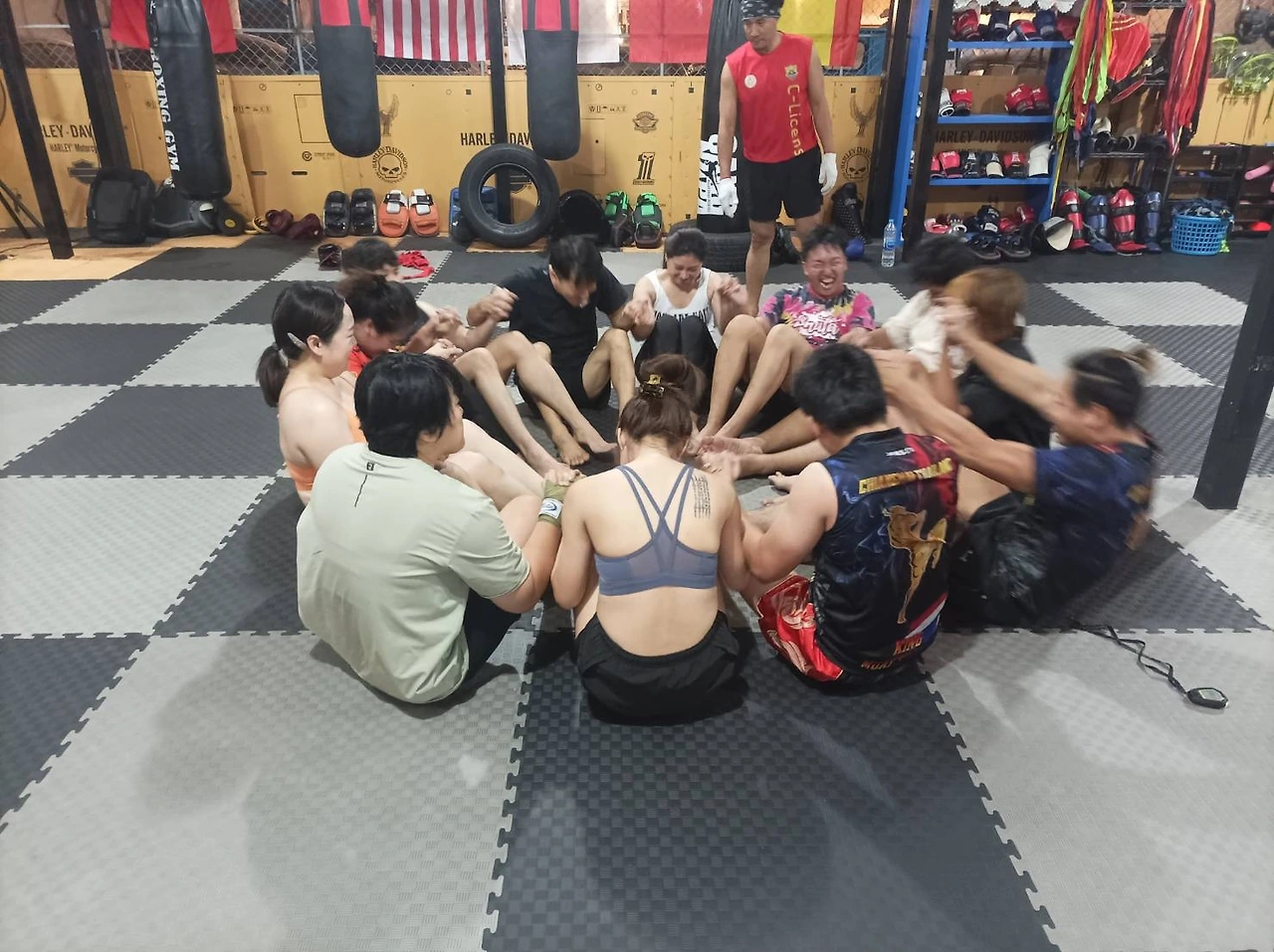 내가 만난 태국인들은 장난을 좋아하고 작은 일에도 잘 웃는다. 이를테면 이런 일이다. 무에타이 수업에서 단체로 근력운동을 하는데 둥그렇게 모여서 다 같이 손을 잡고 윗몸일으키기를 하는 자세를 만들라고 했다. 누군가의 발이 코치의 엉덩이에 닿았고 그러자마자 코치가 장난기 가득한 얼굴로 뭐라 뭐라 말을 했다. 즉시 주변의 태국인들은 모두 빵 터지고 코치의 엉덩이에 발을 넣은(?) 태국인도 같이 깔깔 거리며 웃었다. 나도 상황 파악은 되니까 웃었는데 이들이 한 말을 더 자세히 알아듣고 싶다는 욕망이 솟구치기도 했다.