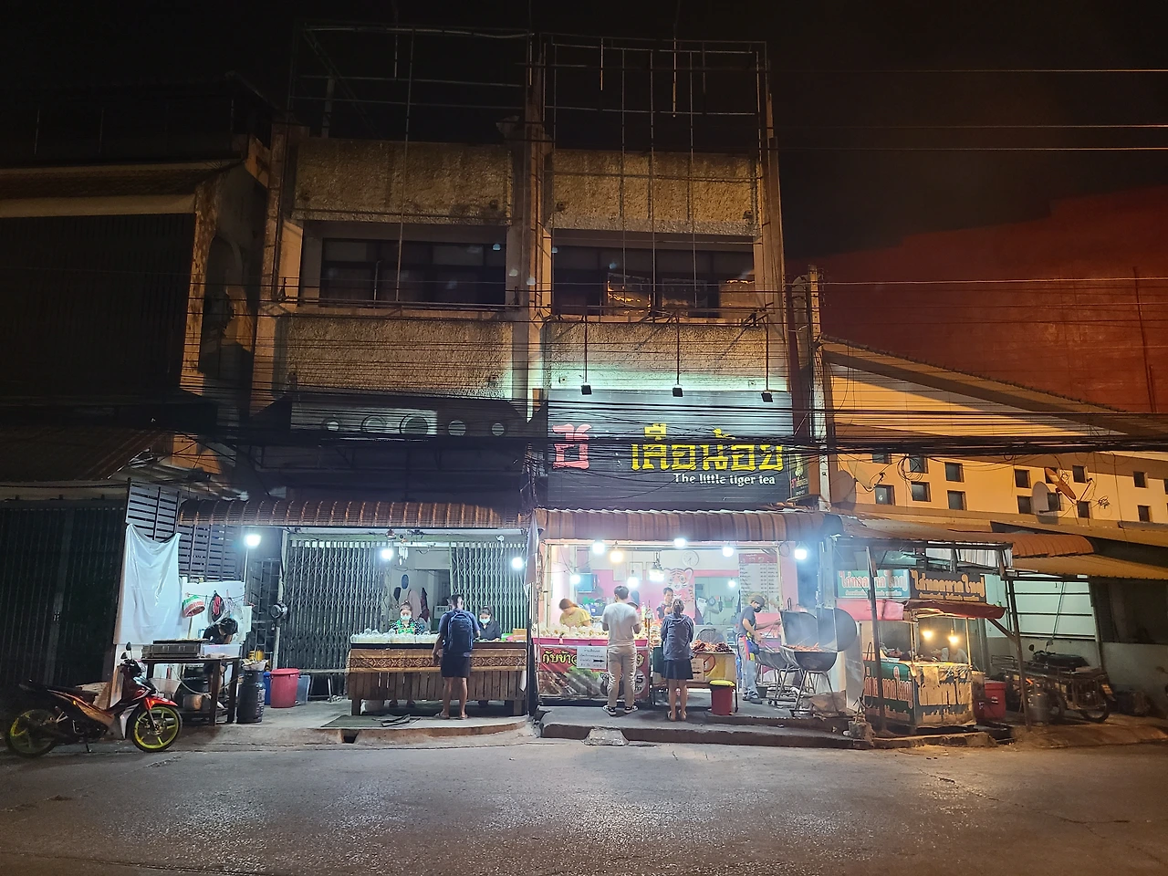 산티탐이라는 지역을 구분하는 것이 애매하지만, 회전 교차로가 있는 거리가 산티탐을 대표하는 중심지역일 것 같다. 나는 이 구역에서 물을 사고 종종 돼지고기 꼬치와 태국식 소시지를 사 먹는다. 건강에 안 좋을 것 같기는 한데 가끔은 뭐에 홀린듯 사먹는다.