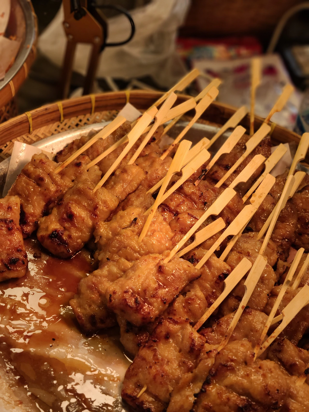 이외에도 각종 튀김, 어묵, 돼지고기구이 등 다양한 음식이 판매되었고 상인들은 신나게 '아로이 막~~ 아로이 막~~ (맛있어요!)'을 외쳐댔다. 이에 화답하듯 사람들도 열심히 소비를 해주더라. 하긴, 이 정도로 더우면 주방이 있어도 요리를 할 의욕이 생기지 않는 것이 당연하다. 아마 대부분의 경우 집에 주방이 제대로 갖추어지지도 않았을 것이다. 이 더위를 뚫고 요리를 하려면 에어컨이라도 틀어야 할 텐데 에어컨까지 틀면서 음식을 만들어 먹기에는 밖에 나가면 한국 돈 2,3천 원에 살 수 있는 음식이 천지인데 굳이 요리를 할 필요가 있겠는가.