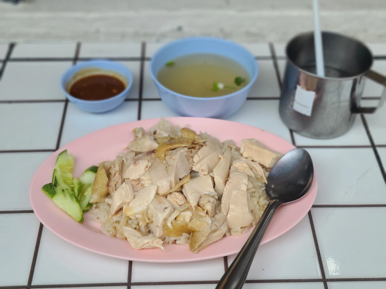 태국 음식 중 그나마 가장 건강에 나쁘지 않다고 생각해서 종종 먹는'카우만까이'. 닭고기 덮밥인데 삶은 닭고기와 닭육수로 한 밥을 같이 먹는 음식이다.