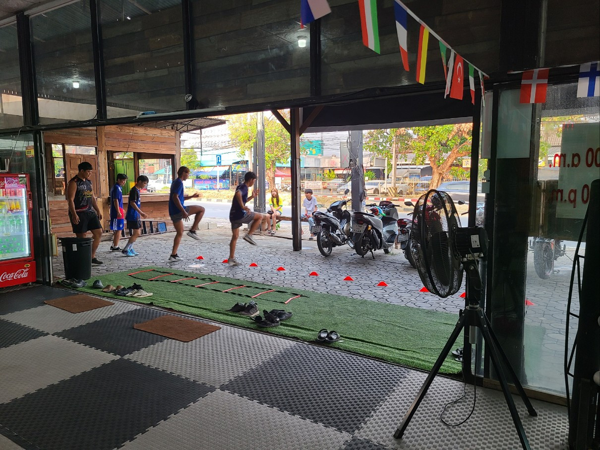 한낮에는 도서관이나 쇼핑몰 등 더위를 피할 수 있는 곳에 있다가 오후 6시가 되면 무에타이 수업을 들으러 간다. 무에타이 체육관은 사방이 다 뚫려있고 에어컨 같은 것은 당연히 없는 곳이기에 야외에서 운동하는 것과 비슷한 느낌이라고 보면 된다. 그나마 가건물 형식이라서 햇빛은 막아주고 선풍기 정도는 돌아간다. 시설의 차이가 있기는 하지만 태국 대부분의 무에타이 체육관이 이런 형식이다. 에어컨을 틀어주는 곳은 치앙마이에서 찾지는 못했는데 있다고 하더라도 한 달에 3500바트 하는 이 체육관 대비 몇 배는 비쌀 것이 뻔하다. 태국은 종종 같은 제품이나 서비스라도 하더라고 시설, 에어컨의 유무에 따라 가격이 2,3배 차이가 나기도 한다.
